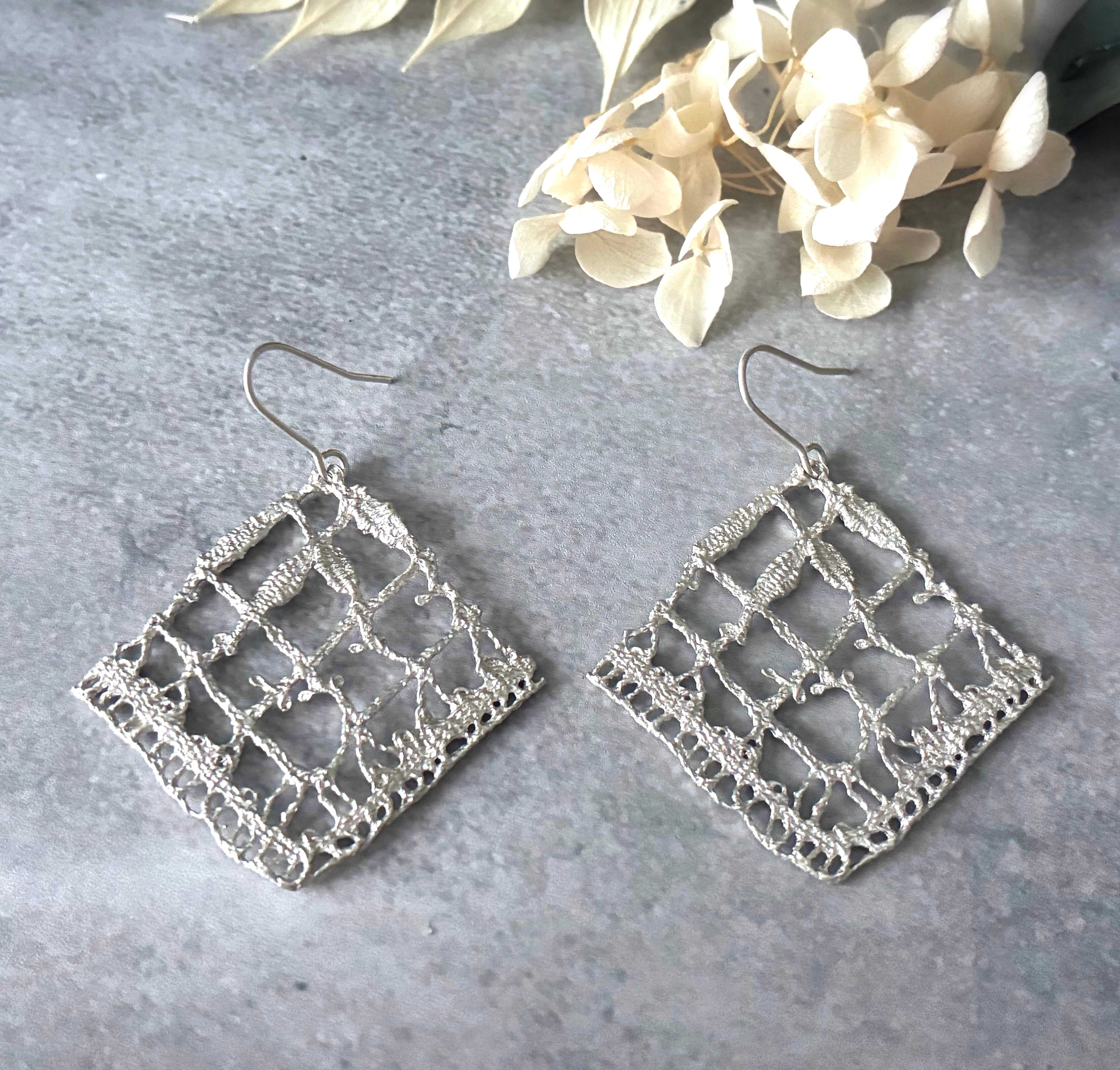 アンティークレースを型取りして鋳造したピアス。